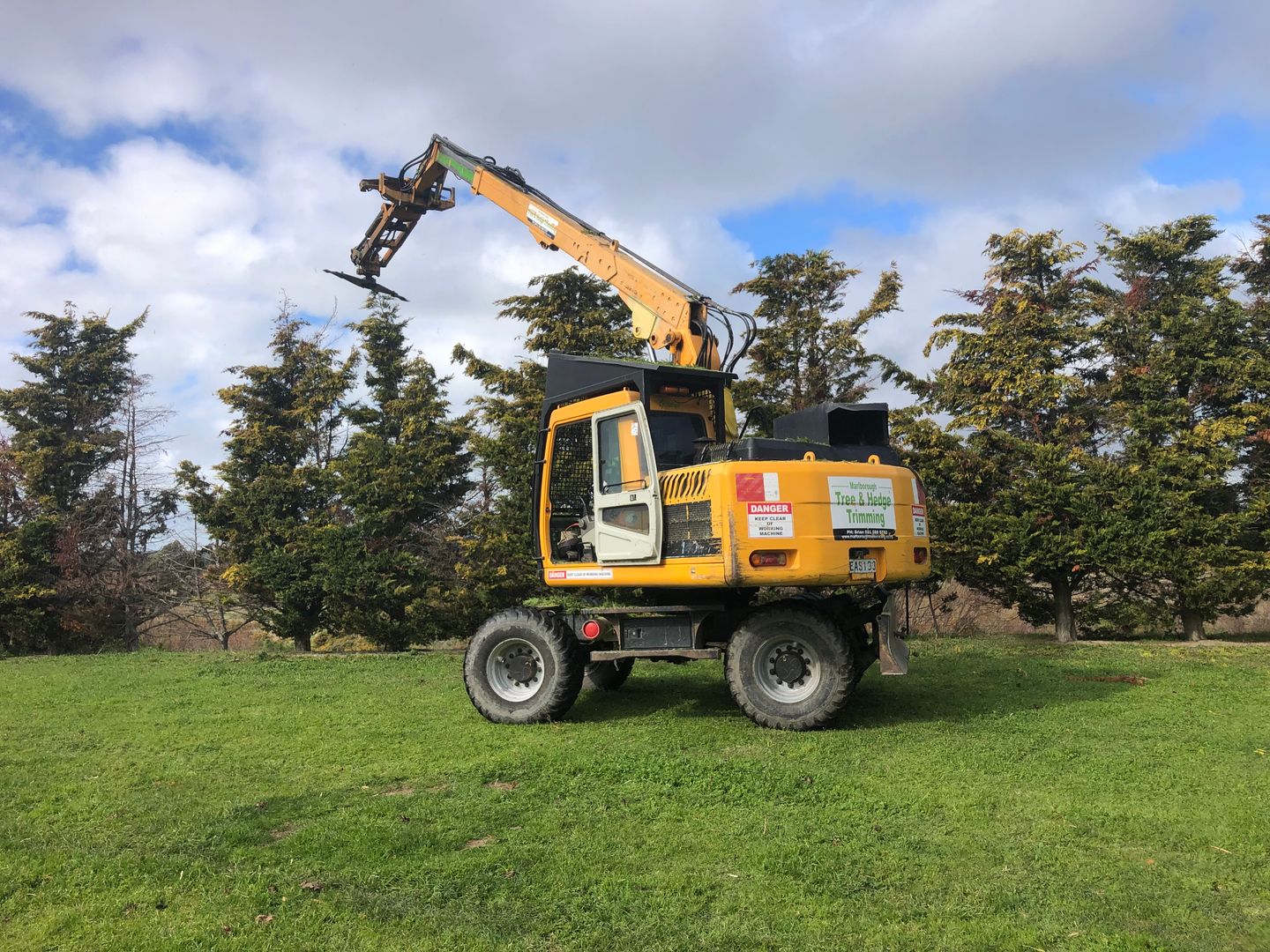 The strength of our business lies in combining the right people with the right tools. We operate a specialised hedge trimmer mounted on a rubber-tyred digger, capable of reaching up to 12 metres high. This allows us to handle large-scale trimming jobs that many others can’t, including restricted access sites where over-the-top trimming is required. We also operate a medium sized trimmer which is an Elkaer Trimmer mounted to the front-end loader on one of our vineyard tractors. This is a particularly efficient trimmer for whipping around those jobs that don’t require the large trimmer. We are also able to obtain close approach permits from Marlborough Lines, to work under power lines on your property. Our team approach means you benefit from both skilled operators and powerful equipment designed to save time and achieve a quality result. From topping and limbing to trimming high branches and shelter belts, we deliver solutions for even the toughest tree-trimming challenges.